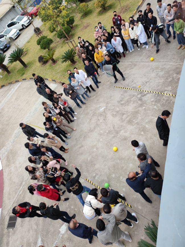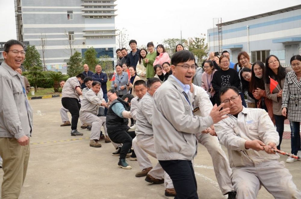 一、拔河比賽:楚河漢界、群雄爭(zhēng)霸,誰更勝一籌?拔河比賽還沒有開始,各隊(duì)成員就躍躍欲試。有的脫外衣、有的換跑鞋、有的踢腿、有的彎腰,都在做熱身準(zhǔn)備。拔河比賽實(shí)行6對(duì)隨機(jī)抽取兩隊(duì)比賽,贏的隊(duì)伍再次兩兩比賽,直至決出冠軍、亞軍。拔河比賽共有6個(gè)隊(duì)參賽,分別是生產(chǎn)一部、生產(chǎn)二部、工程部、分析部、研發(fā)系統(tǒng)、行政系統(tǒng)。拔河比賽最為激烈、精彩、熱鬧,加油聲、笑聲不絕于耳。尤其是生產(chǎn)二部,挑選了精兵強(qiáng)將、憋足了勁,比賽時(shí)每一個(gè)人似而后仰,用腳后跟抵地,似而前傾,用腳掌抵地,觀戰(zhàn)的人都為他(她)把心提到了嗓子口,鼓掌的人把手都拍紅了,終于在大家的共同努力下得到了冠軍。